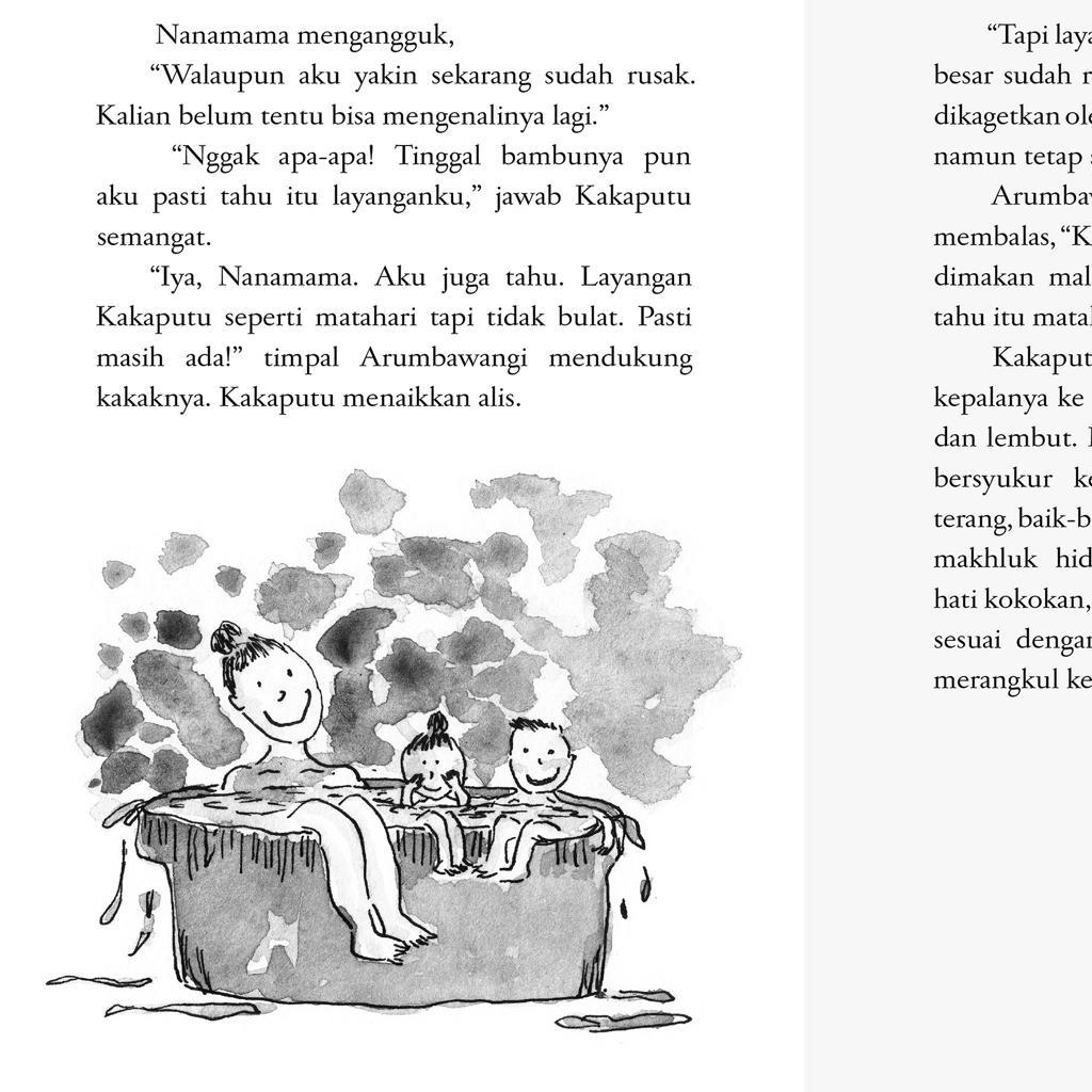 Seorang anak dikirim dari langit, dibawa oleh kokokan, dan dijatuhkan ke kebun bawang merah milik Nanamama. Anak itu kotor sekali, tapi sangat lucu. Kakaputu yang melihatnya langsung sayang dan membawanya pulang. Nanamama memberinya nama Arumbawangi. Sejak itu hidup mereka bertiga penuh kegembiraan, sampai suatu ketika datanglah seorang pengusaha hendak mendirikan hotel di tengah sawah. Saat seluruh warga desa sepakat untuk menjual lahan, hanya Nanamama yang bergeming. Tanah adalah denyut nadi bagi Nanamama. Walau keserakahan manusia kadang lebih berkuasa dari akal sehat, Nanamama bersama Kakaputu dan Arumbawangi dengan gagah berani mempertahankan tanah mereka.